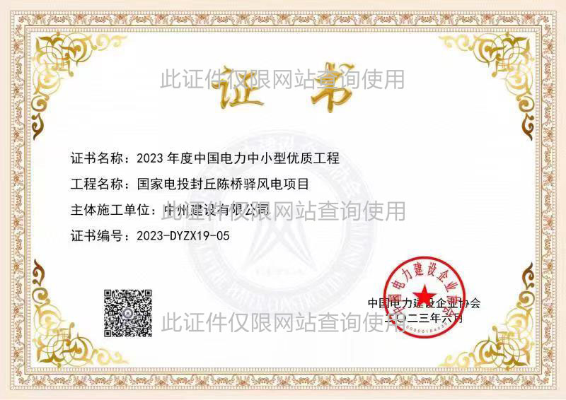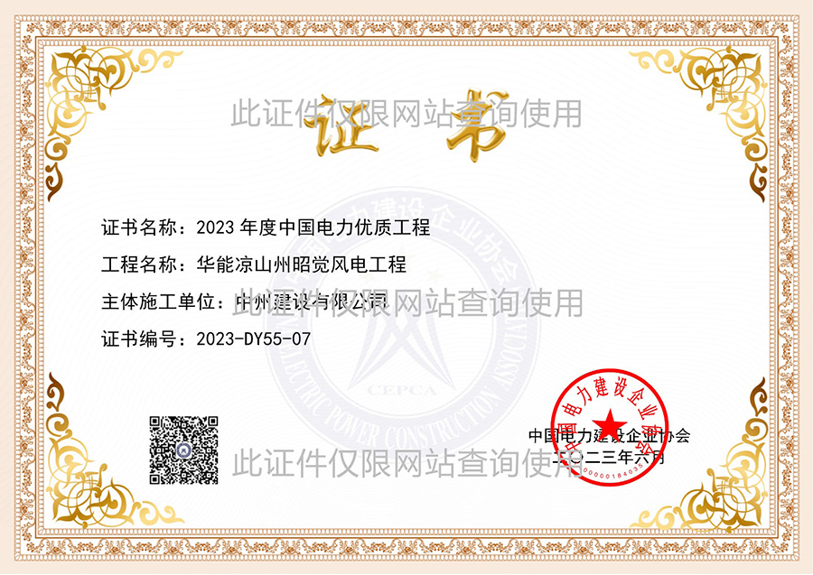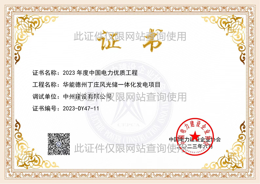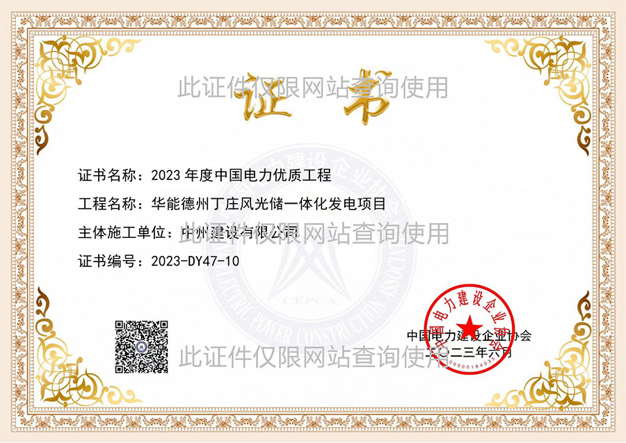 國優證書:華能德州丁莊水庫200MW光伏發電項目主體施工單位